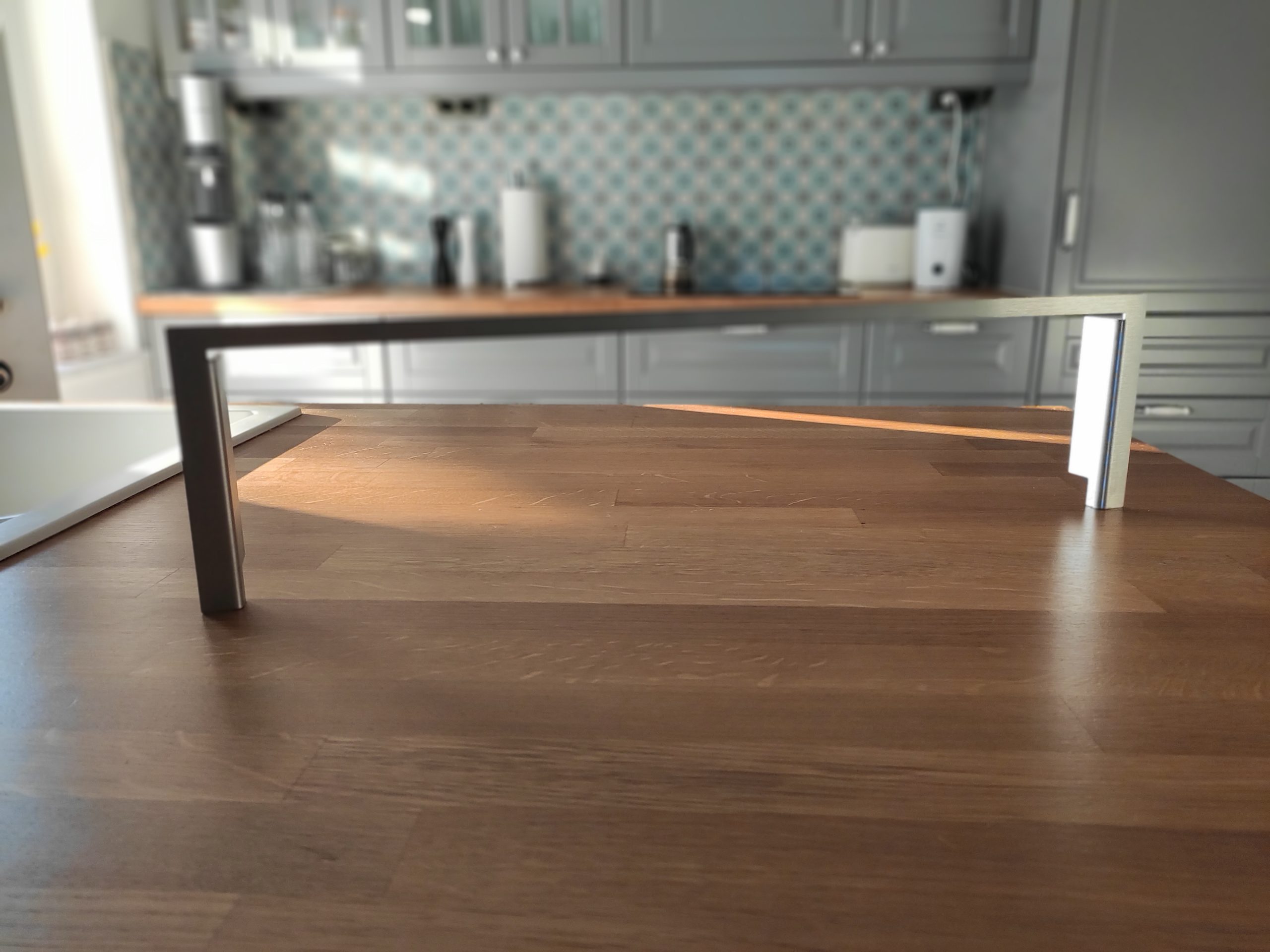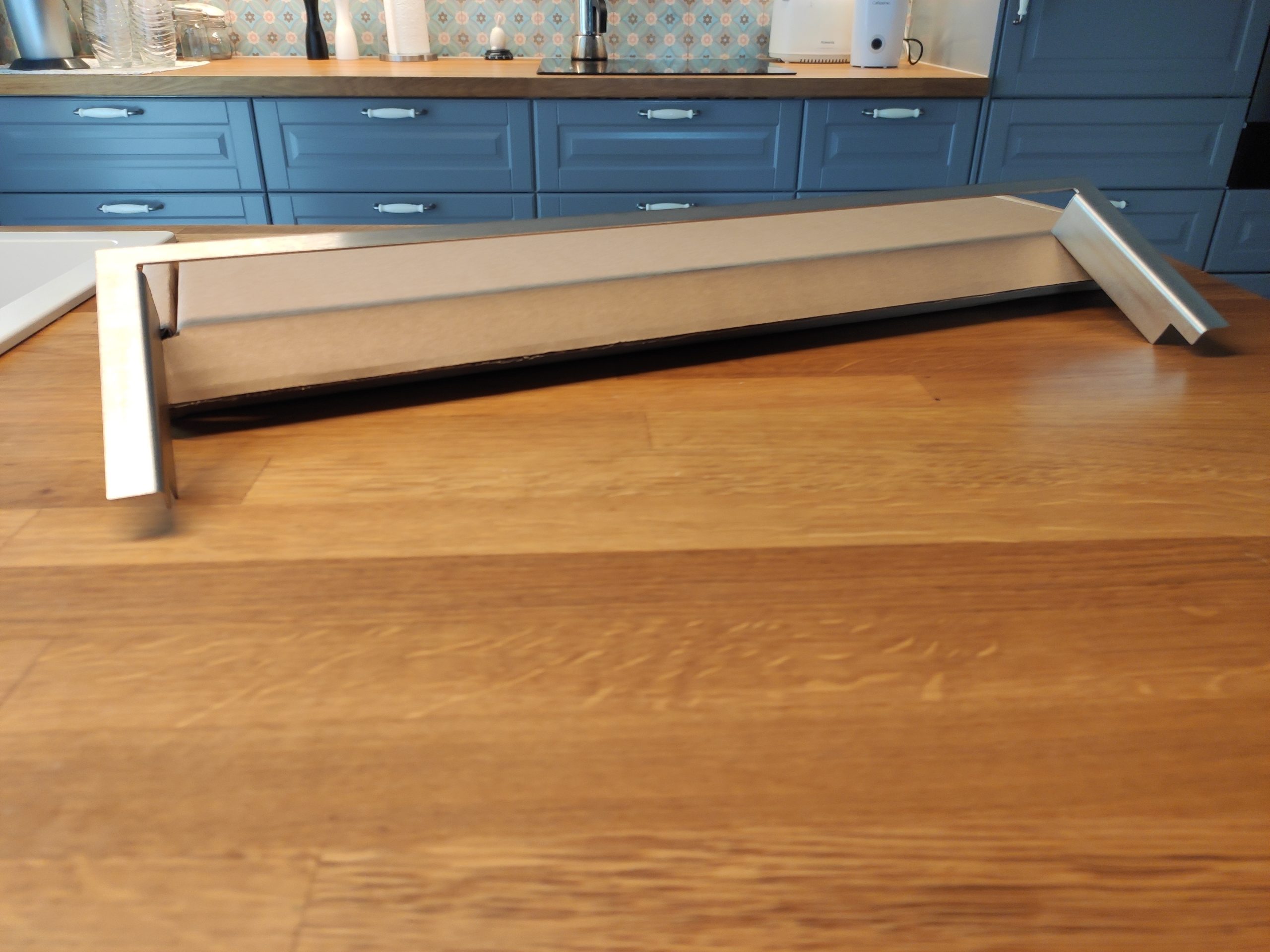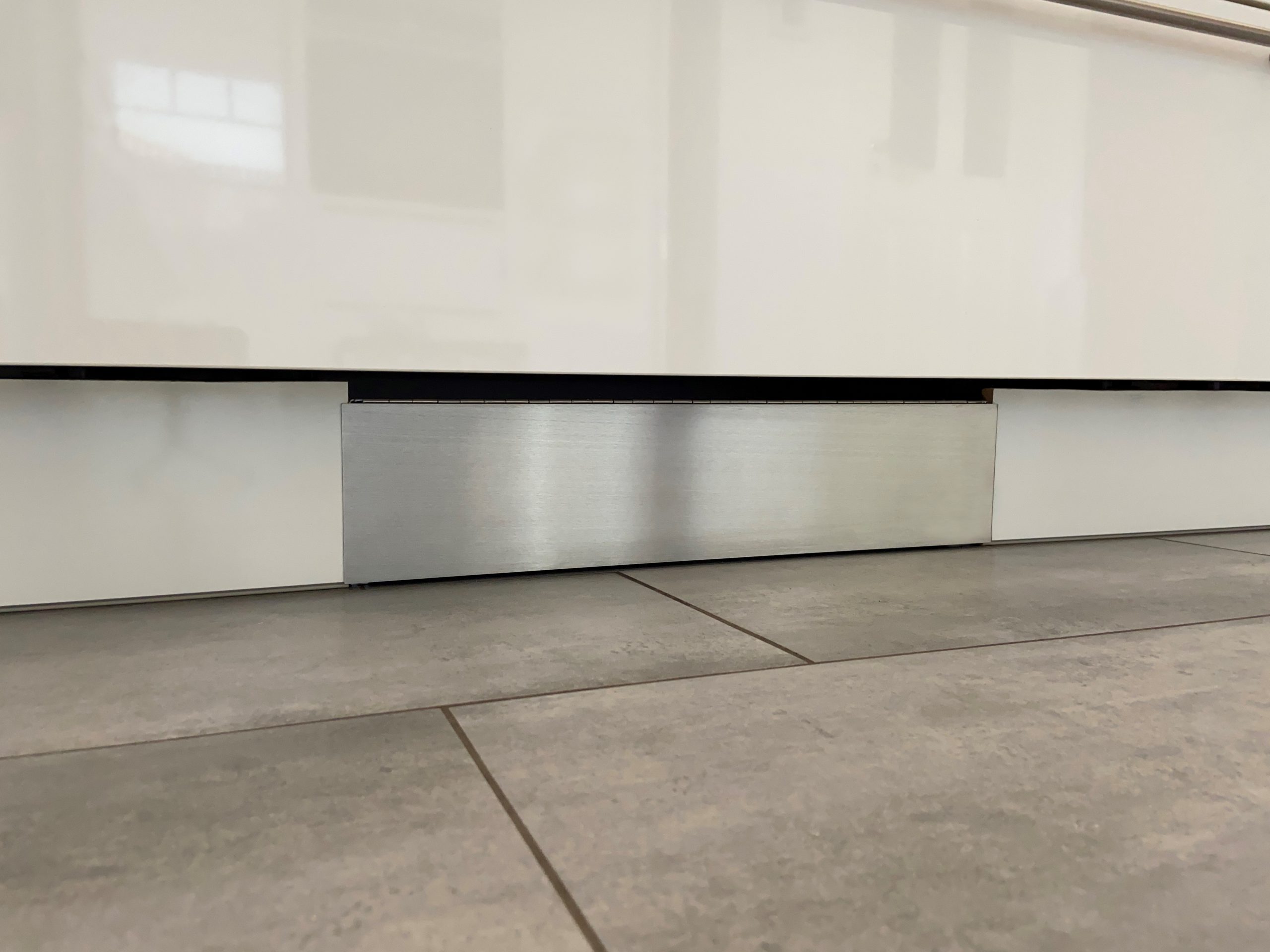 Der Blendrahmen besteht aus gebürstetem Edelstahl und dient dazu das umlaufende Spiel zur ROBiBOX Plus oder Schnittkanten abzudecken. Der Blendrahmen wird in die ROBiBOX® Plus eingesteckt bevor die Frontblende montiert wird.